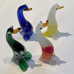 1 Stück Glastier bunt Laufente Handarbeit Länge 2 cm Breite 3,5 cm Höhe 6 cm farbl.sort.