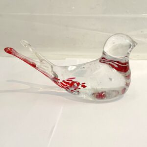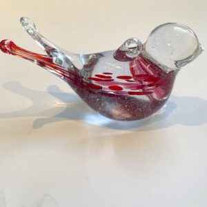 1 Stück Glastier bunter Vogel zum hängen rot klar Figur aus Glas Sammlerstück Tier Handarbeit Höhe ca. 4 cm Länge 7 cm