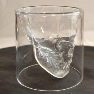 Partyglas mit Skelett Totenkopf Klarglas mundgeblasen Inhalt 0,05 Liter Höhe 7 cm Durchmesser 7 cm
