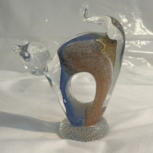 Glas Katze Glastier Glasfigur Ornament blau bunt klar Handarbeit Höhe ca. 11 cm Länge 10 cm Tiefe 4 cm