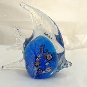 Glas Fisch Skalar zum hinstellen Klarglas mit blau und bunt Tier Handarbeit Höhe ca. 11 cm Länge ca. 11 cm