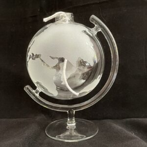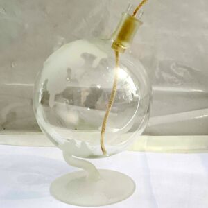 Diese handgeblasene Globus-Öllampe aus Klarglas ist 15 cm hoch und spendet ein warmes Licht. Ideal für Wohn- oder Außenbereiche, ist sie eine dekorative Ergänzung und ein echter Hingucker. Inklusive passender Ersatzdochte und Lampenöl erhältlich.