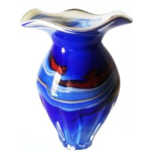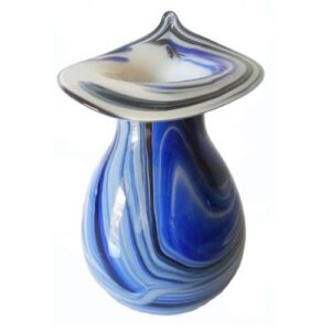 Artikel: Große Blumenvase Farbe: blau-beige-weiß mehrfarbig Tulpenvase Oberstdorfer Glashütte