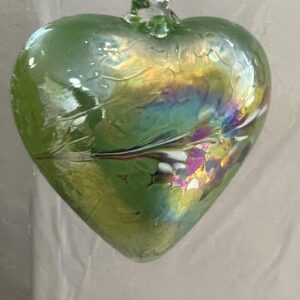 Herz Groß zum hängen bunt Glas Herz Ornament grün weiß klar Fensterdekoration mundgeblasenes Kristallglas Breite 12 cm Höhe ca. 13 cm Tiefe 5,5 cm