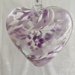 Herz Groß zum hängen bunt Glasherz Ornament violett weiß Fensterdekoration mundgeblasenes Kristallglas Breite 12 cm Höhe ca. 13 cm Tiefe 5,5 cm