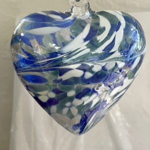 Herz Groß zum hängen bunt Glas Herz Ornament blau weiß klar Fensterdekoration mundgeblasenes Kristallglas Breite 12 cm Höhe ca. 13 cm Tiefe 5,5 cm