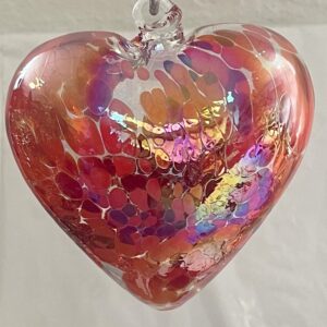 Herz Groß zum hängen bunt Glasherz rot bunt Fensterdekoration mundgeblasenes Kristallglas Breite 12 cm Höhe ca. 13 cm Tiefe 5,5 cm