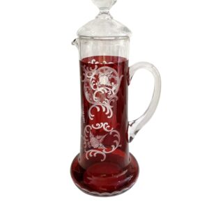 Antik Glas original Egermann böhmisch Glaskrug, Glaskanne mit Deckel Höhe 40 cm breiteste Stelle 17 cm rubin rot geschliffen böhmisches Glas