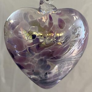 Herz zum hängen bunt Glasherz violett weiß Fensterdekoration mundgeblasenes Kristallglas Breite 7,5 cm Höhe ca. 9 cm Tiefe 4 cm