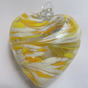 Herz zum hängen bunt Glasherz gelb weiß klar Fensterdekoration mundgeblasenes Kristallglas Breite 7,5 cm Höhe ca. 9 cm Tiefe 4 cm
