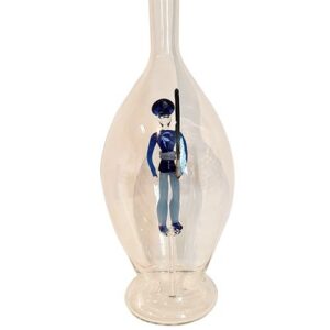 Glas Karaffe mit farb. Soldat mit Gewehr in Innerem Höhe 30 cm Inhalt 0,5 Liter mundgeblasen Klarglas