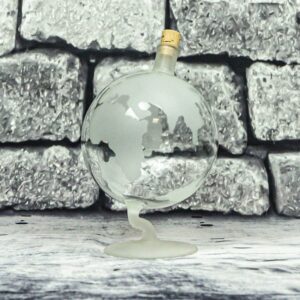 Glasflasche Dekoflasche Zierkaraffe Globus mit Erdkarte mattiert Höhe 15 cm Inhalt 0,5 Liter mundgeblasen Klarglas