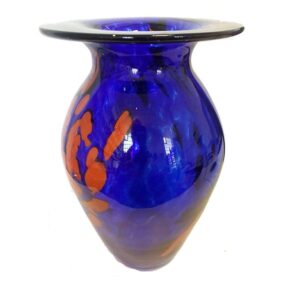 Farbe: Blau Orange mehrfarbig Vase bauchig mundgeblasen aus Glas Oberstdorfer Glashütte