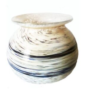 Artikel: Glaskugelvase Farbe: blau-weiß-braun mehrfabrig rundes Väschen Oberstdorfer Glashütte