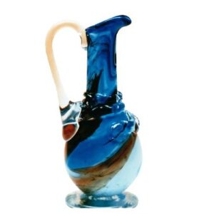 Glaskrug mit Henkel ca. 29 cm mundgeblasen blau beige weiß