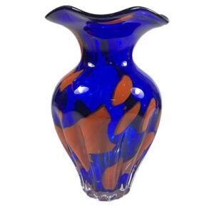Glas Vase Creation Blumenvase Höhe ca 35 cm in blau orange marmoriert mundgeblasen Sonderangebot