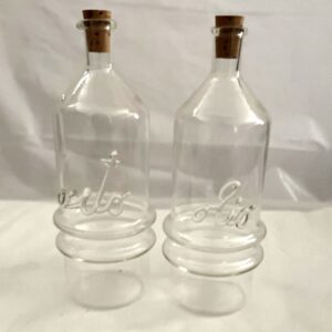 Essig Öl Set antiker Stil Aufschrift Aceto & Olio Menage Höhe 17 cm Klarglas mundgeblasen