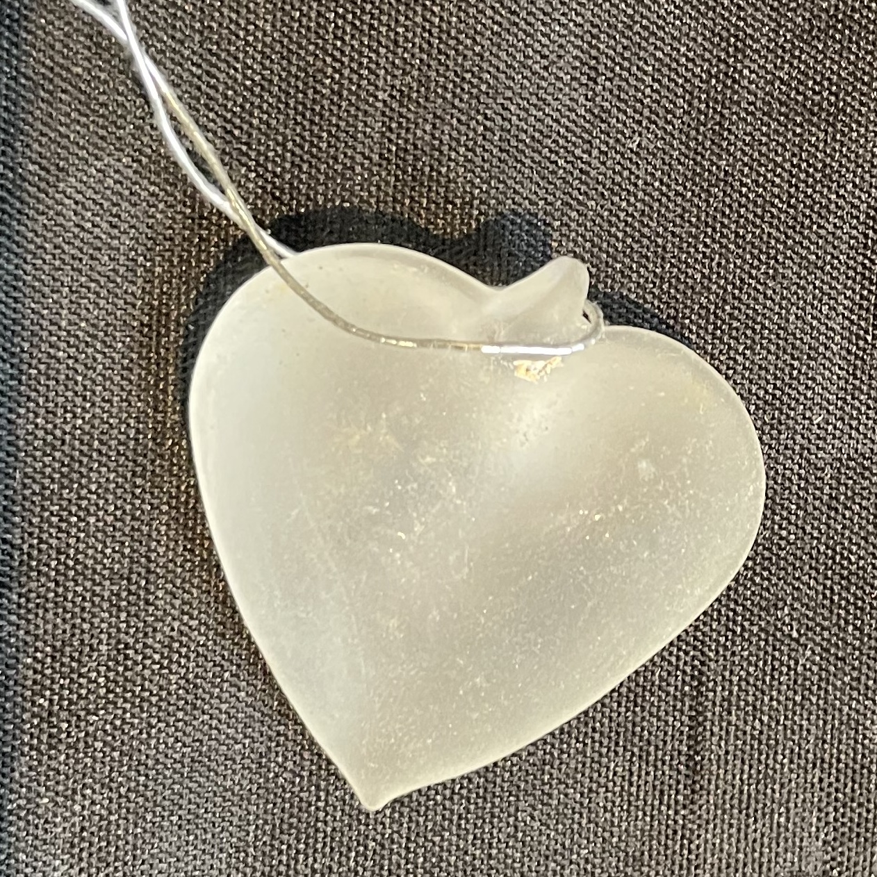 1 Stück Glas Herz zum hängen Klarglas mattiert Tier Handarbeit Höhe ca. 3 cm Länge 3 cm