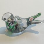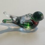 1 Stück Glasvogel zum hinstellen oder hängen grün violett klar Figur aus Glas Tier Handarbeit Höhe ca. 3 cm Länge 5-6 cm