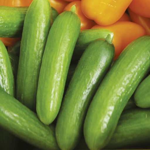 Die Früchte dieser klassischen „Bauerngurke“ werden ca. 15 – 20 cm lang. Leicht gestachelte Schale.
