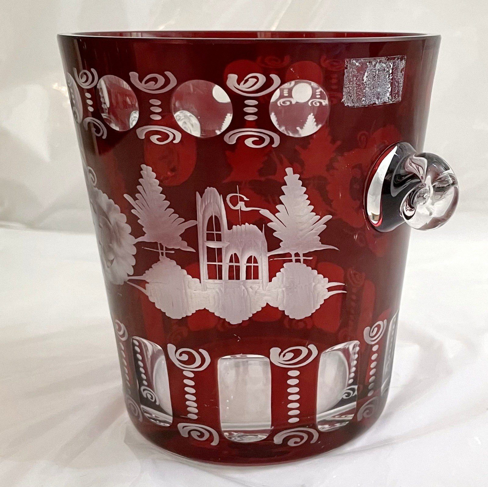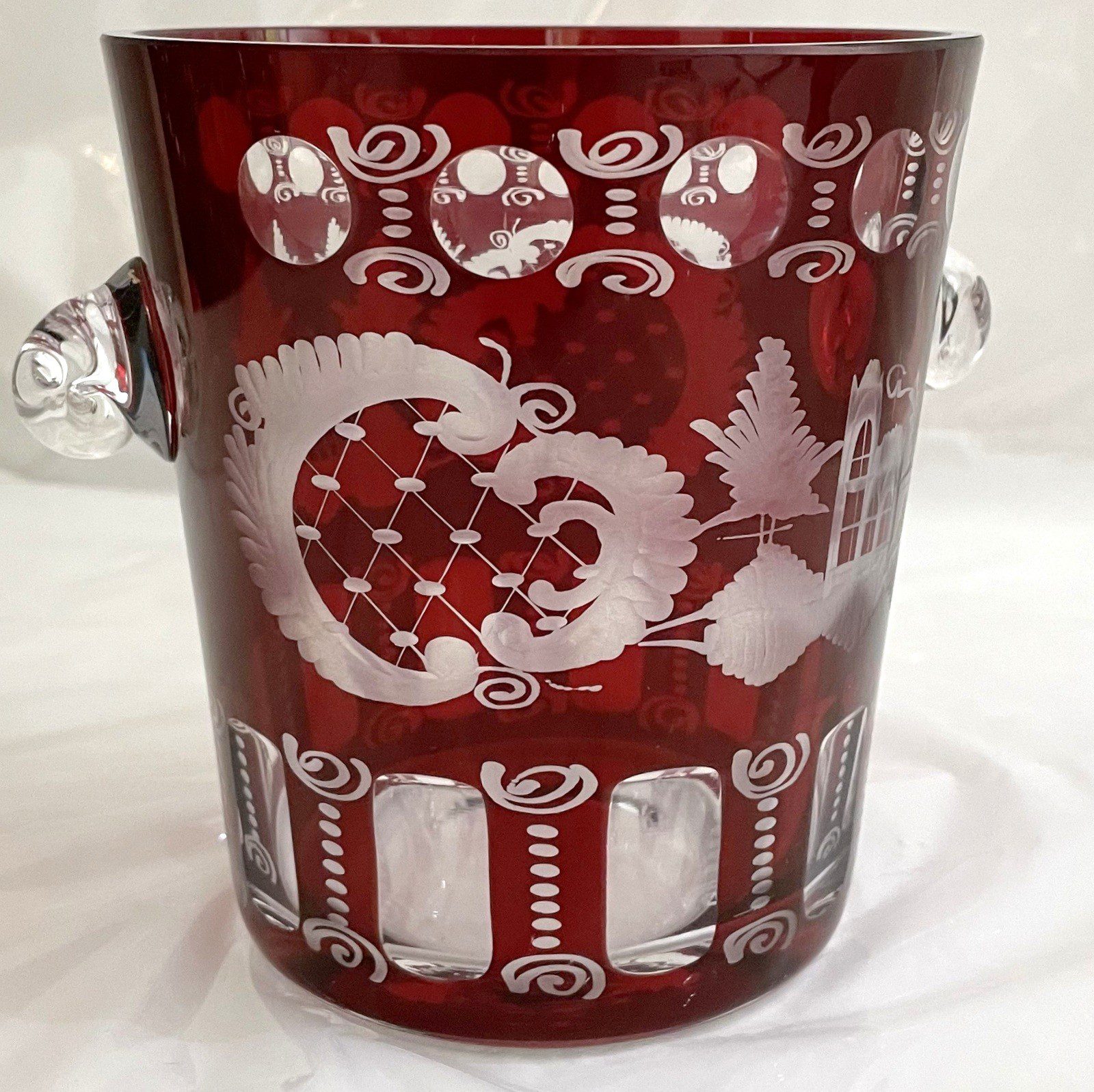 Antik Glas original Egermann Eiskühler Höhe 13 cm breiteste Stelle 14 cm rubin rot geschliffen böhmisches Glas