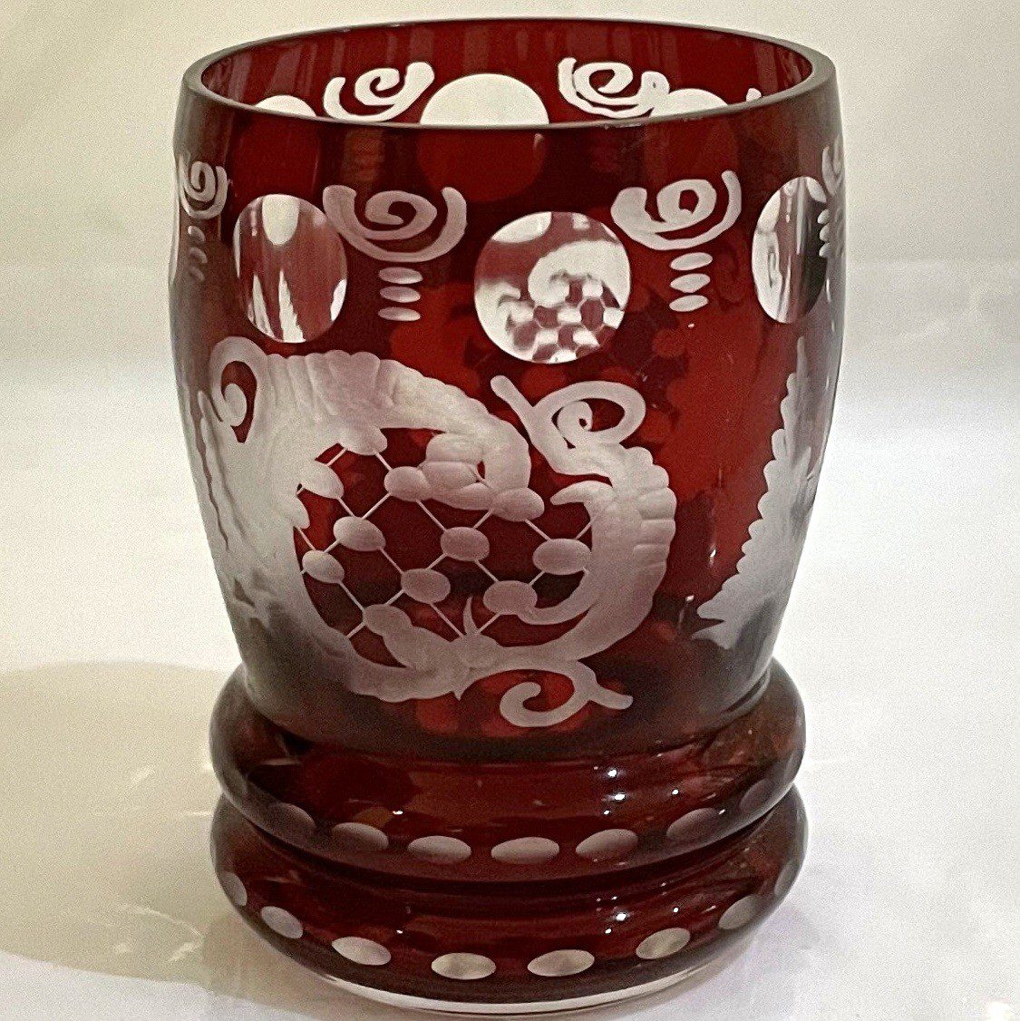 Antik Glas original Egermann Schnapsglas Stamper Höhe 7,5cm rubin rot geschliffen böhmisches Glas