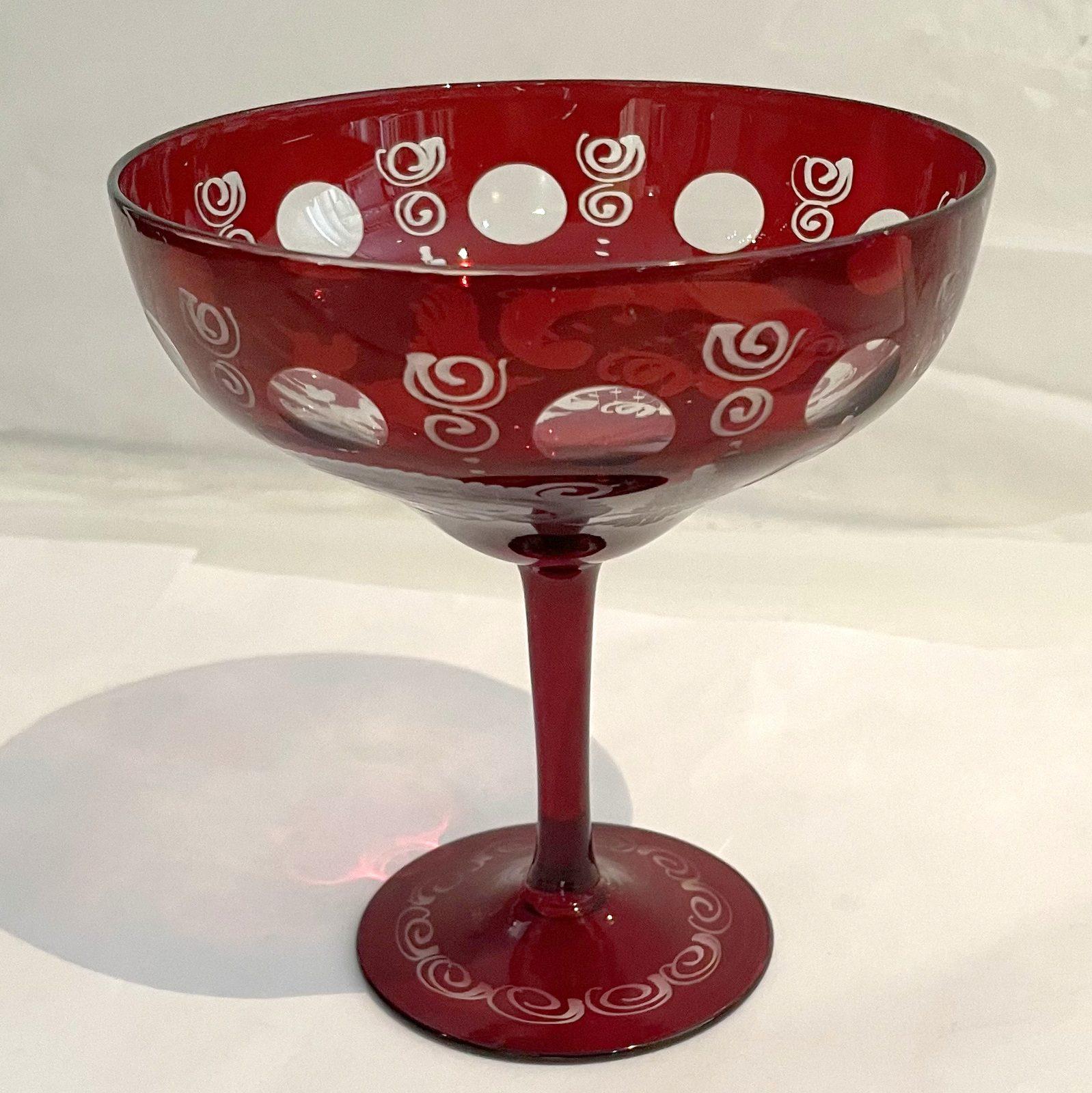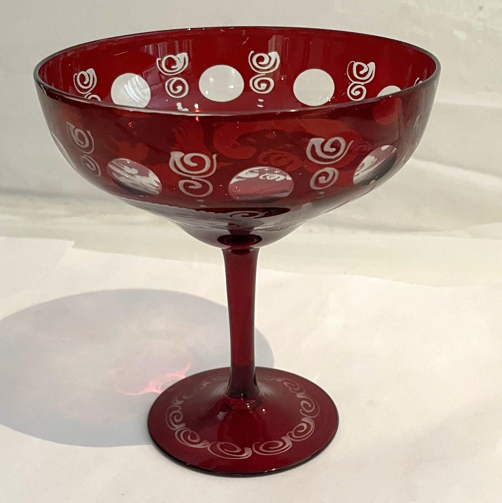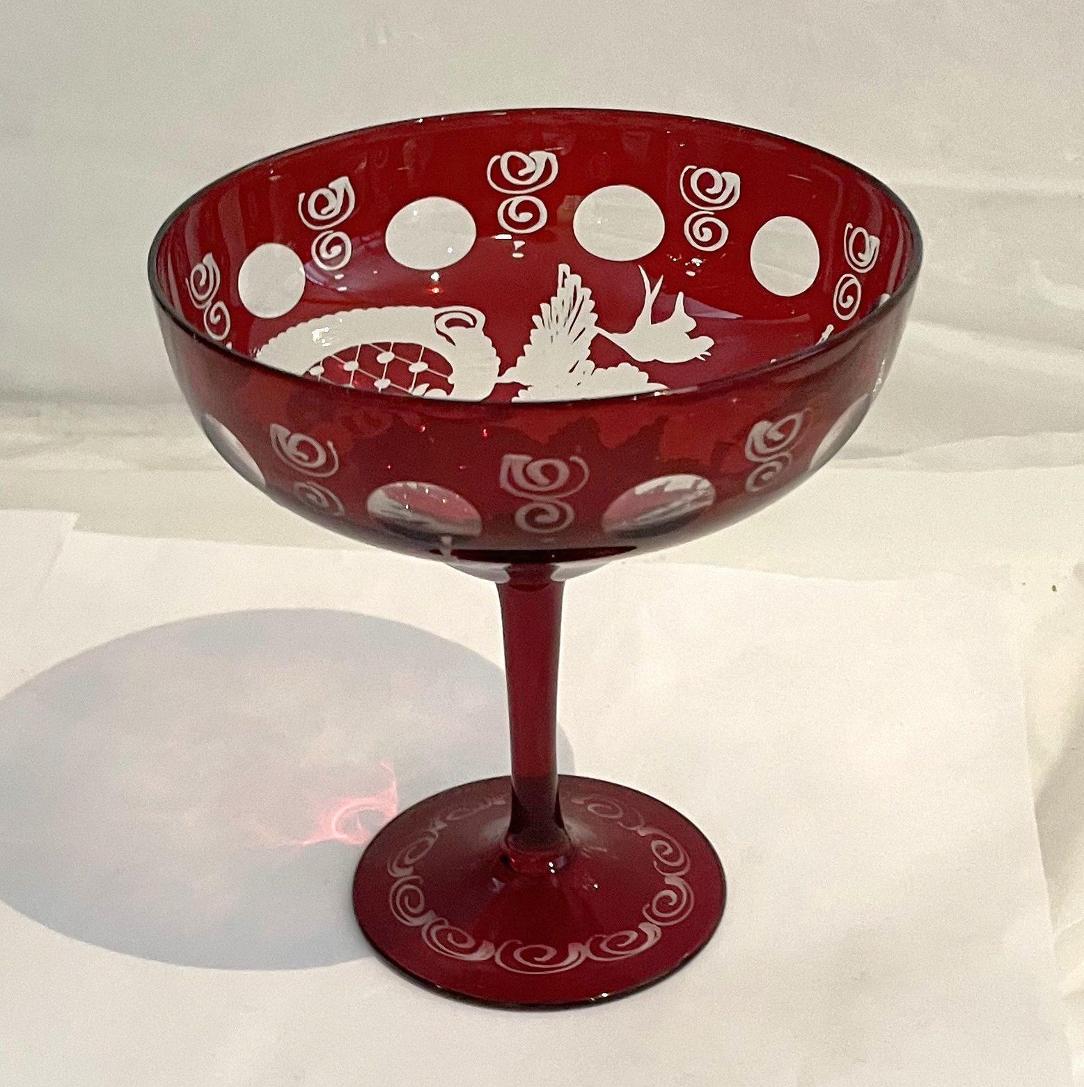 Egermann antike Sektschale rubin rot geschliffen Höhe 12 cm Ø oben 11 cm