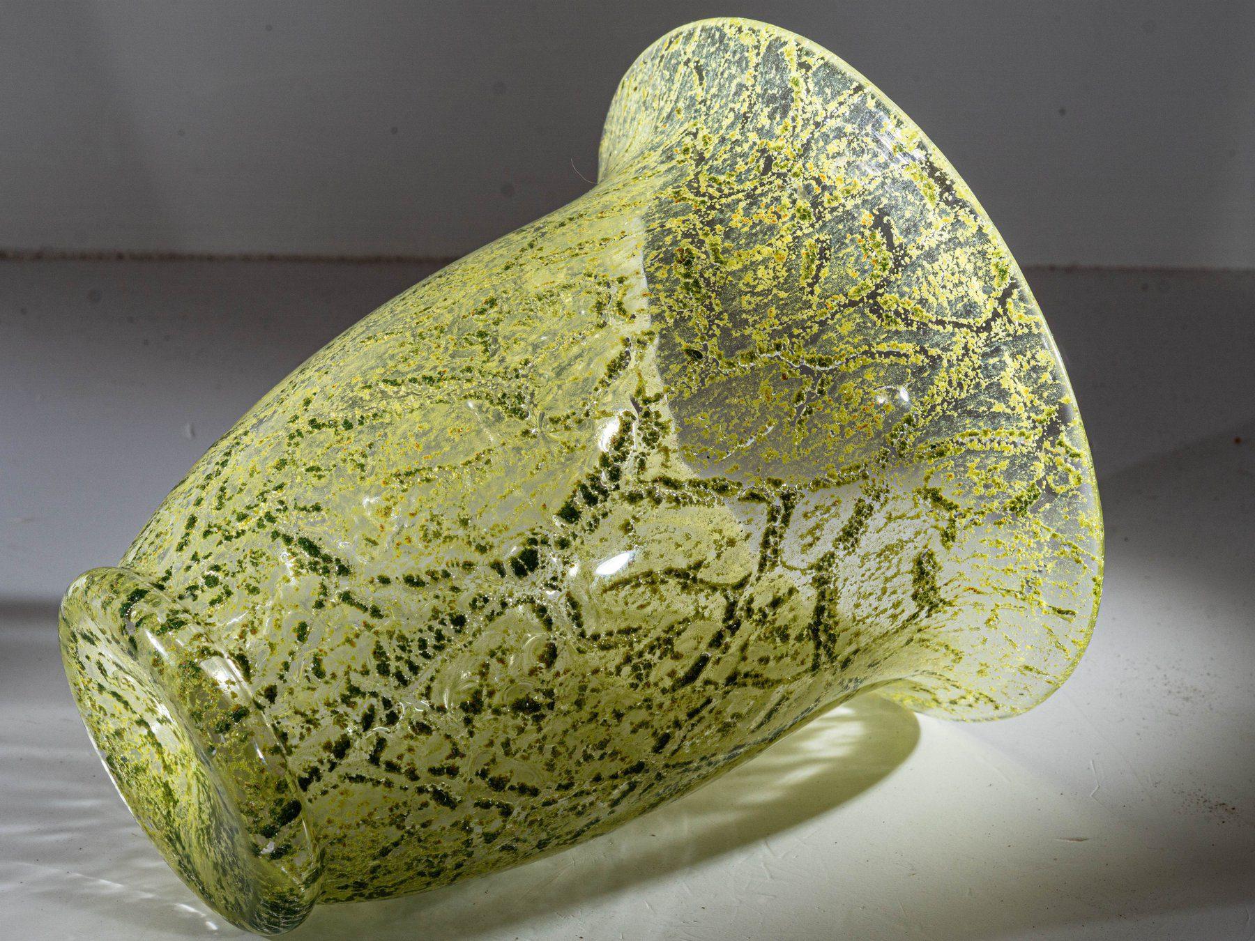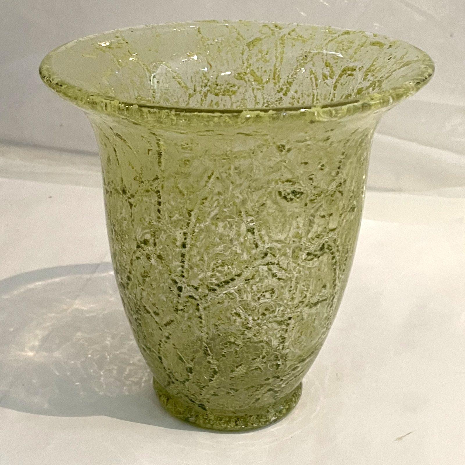 Antike Glas Vase von Loetz Klostermühle Art Deco mundgeblasen Höhe 15 cm Durchmesser oben 14,5 cm unten Abriß Farbe grün gold Zustand wie neu