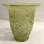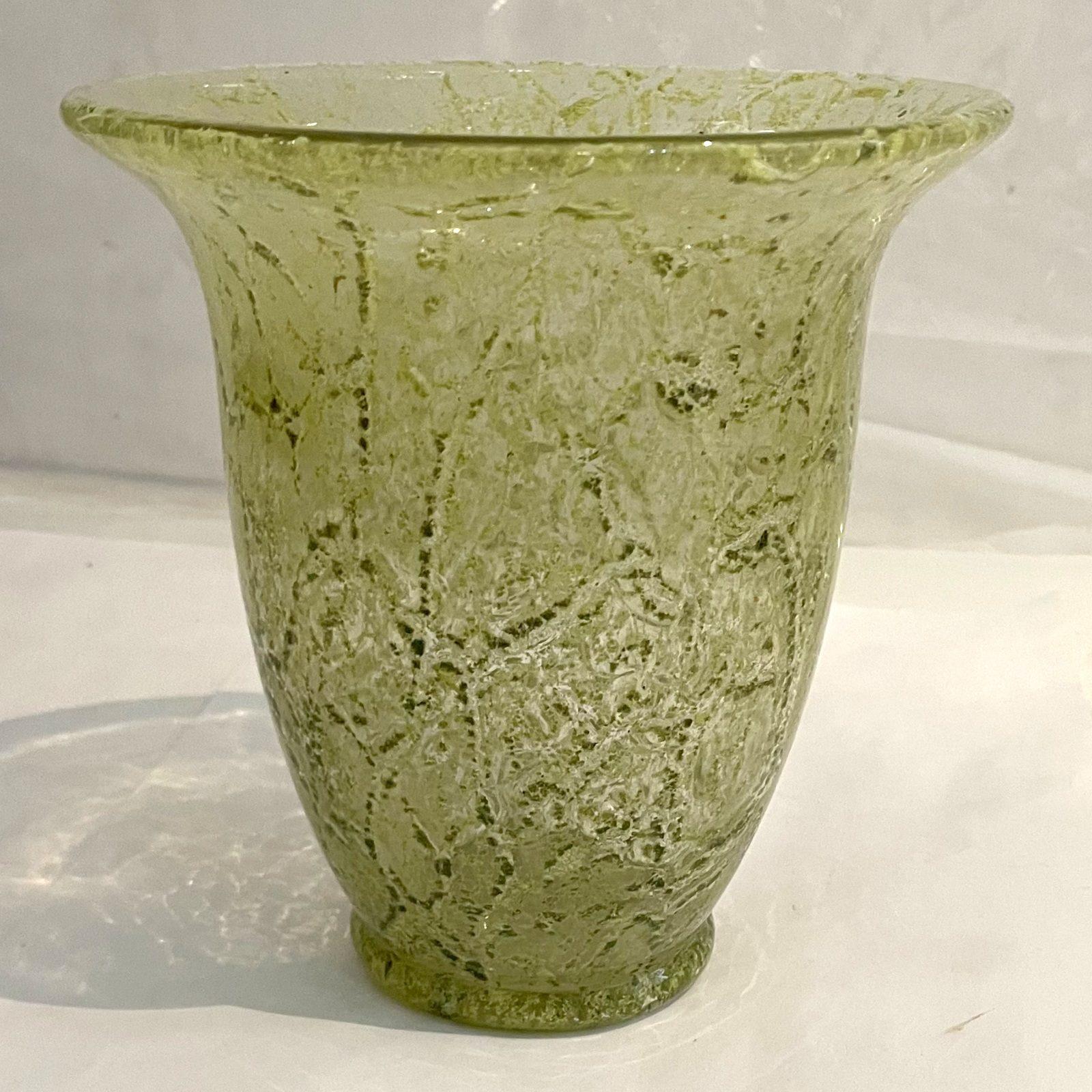 Antike Glas Vase Loetz Klostermühle Art Deco mundgeblasen Höhe 15 cm Durchmesser oben 14,5 cm unten Abriß Farbe grün gold Zustand wie neu
