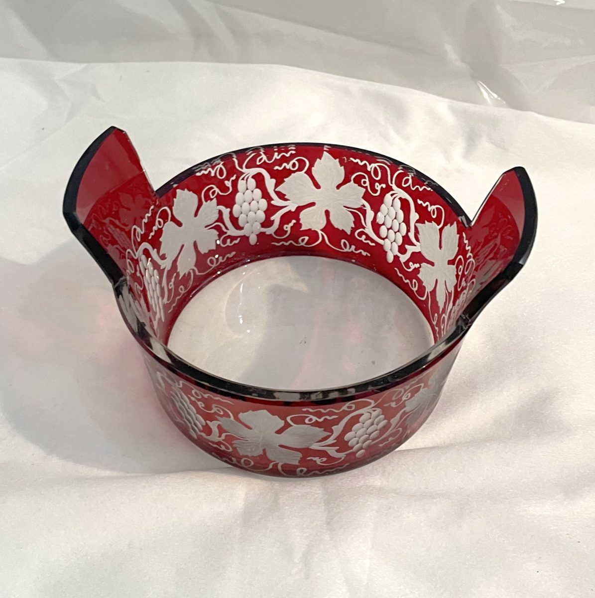 Antike Glasschale Überfang rot klar geschliffen mundgeblasen Durchmesser 15 cm Höhe 8,5 cm diese ist ein Unikat und deshalb besonders dekorativ. Die Schale kann beliebig gefüllt oder dekoriert werden, ebenso ist diese eine nette Geschenkidee