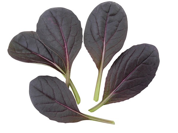 Würziger Blattsenf mit leuchtend rot gefärbter Blattspreite und hellgrün abgesetztem Blattstiel. Sehr gute Farbausprägung auch unter schlechten Lichtbedingungen. - Tatsoi Tama