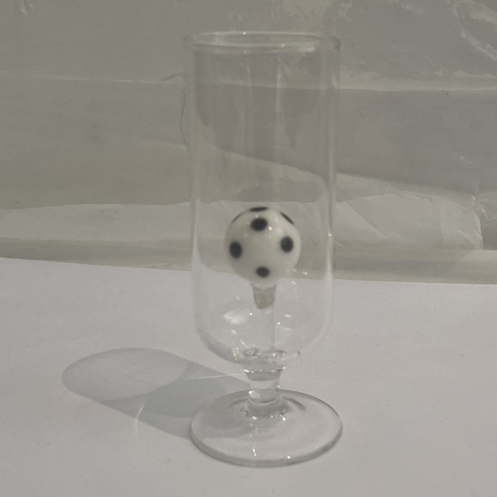 Schnapsglas Stamper mit buntem Fußball Höhe ca. 10 cm Klarglas mundgeblasen