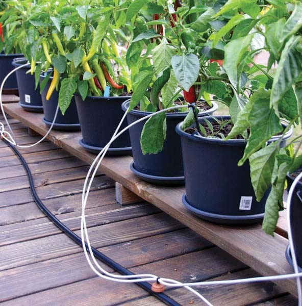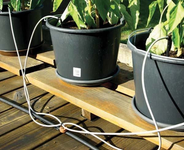 Somit können bis zu 40 Pflanzkübel / Blumenkästen gleichzeitig bewässert werden. Jeder Troper gibt pro Stunde 2 Liter Wasser ab.