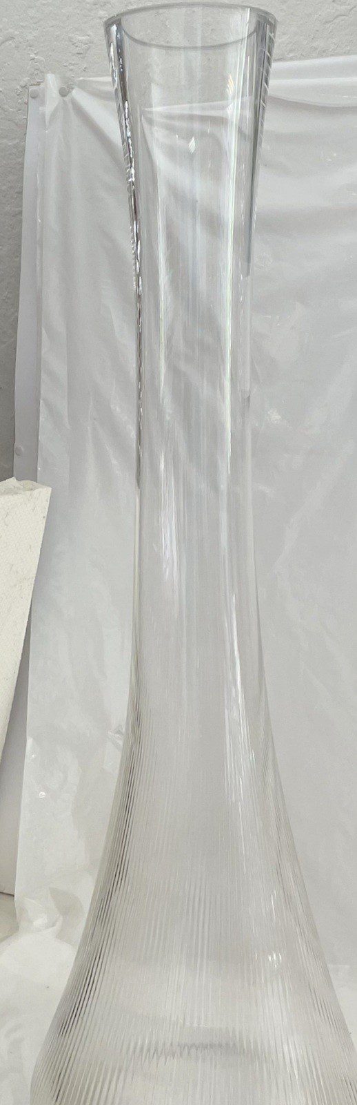 XL Bodenvase mit Rillen in schmaler Form – Klarglas, Mundgeblasen, Unikat