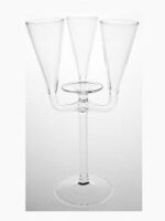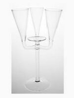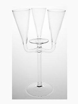 Dreiarmiges Trinkglas mit Ablage für ein Fläschchen Partyglas mundgeblasen, klar Höhe ca 17 cm