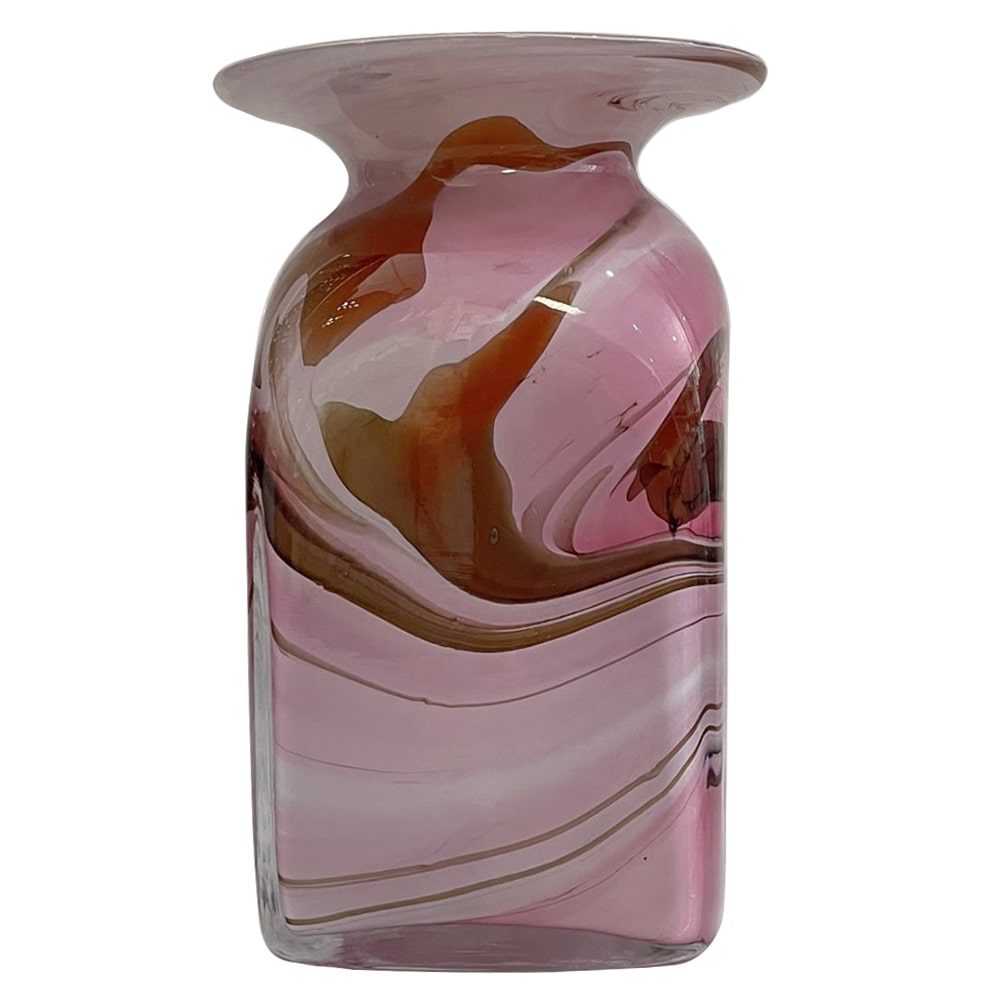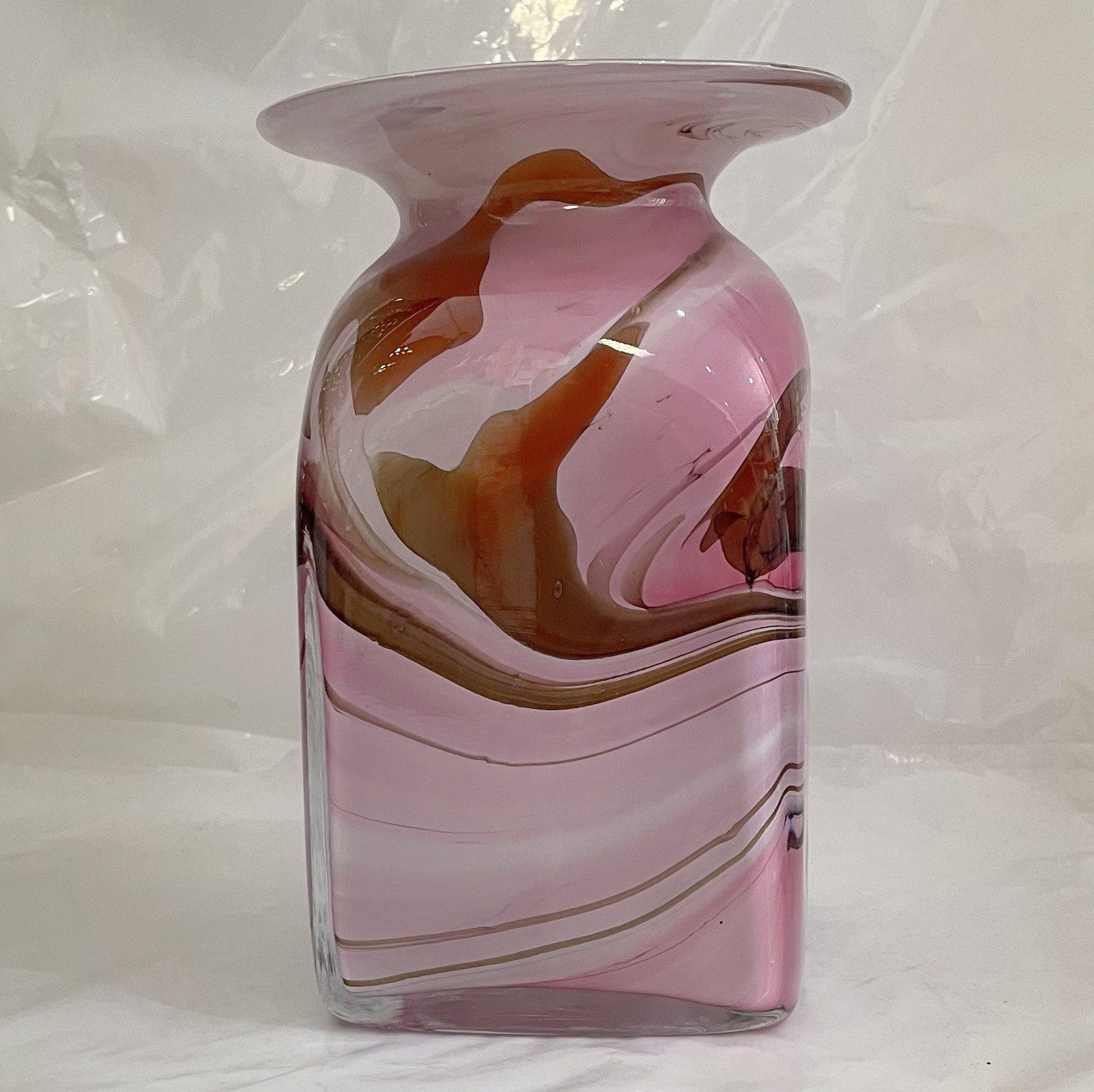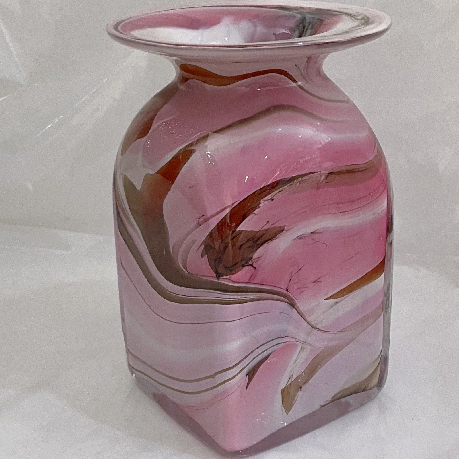 Eckige Blumen Glas Vase Höhe ca. 20 cm Rosa beige weiß mehrfarbig mundgeblasen Angebot