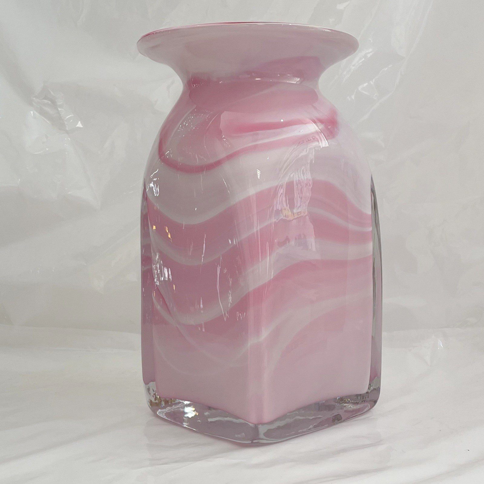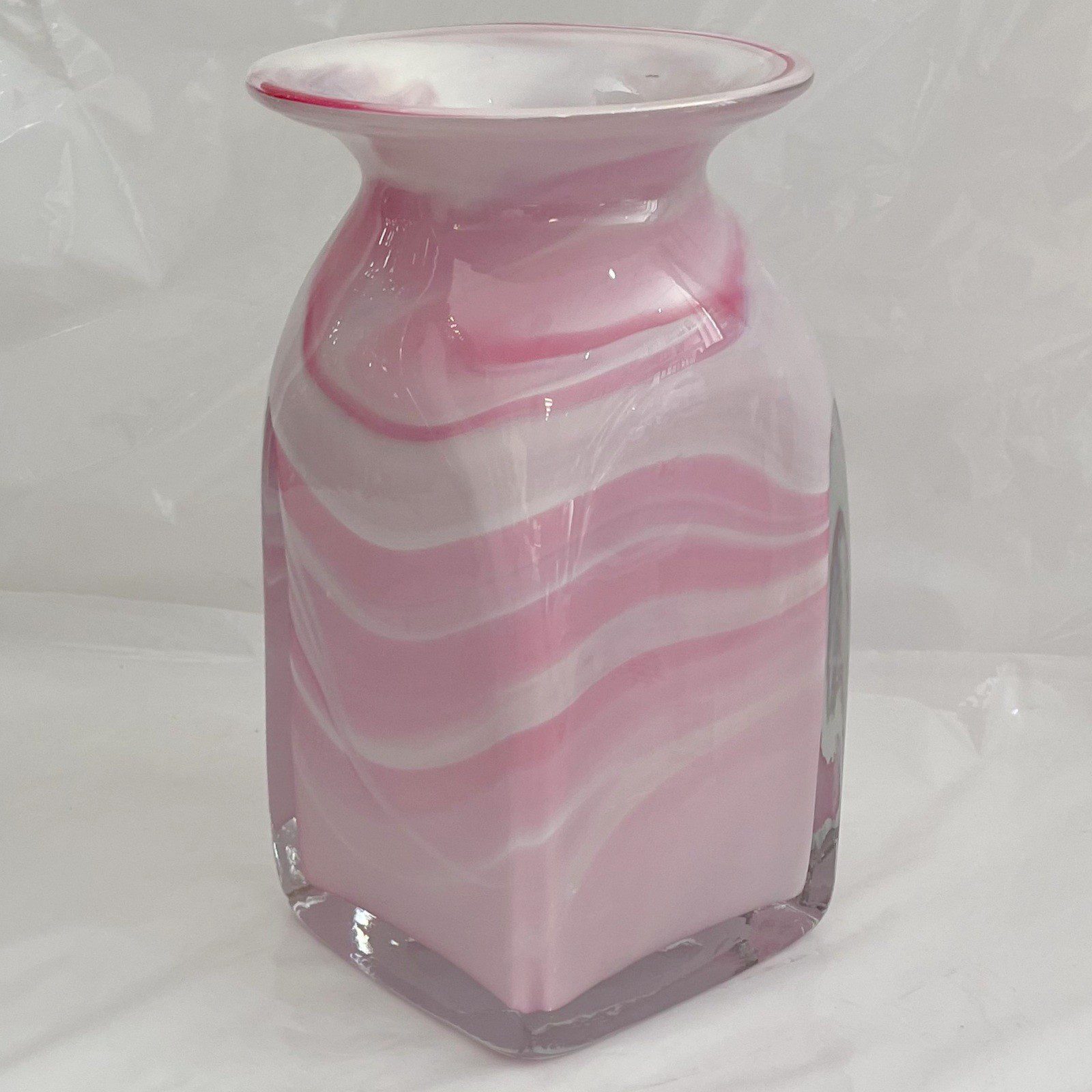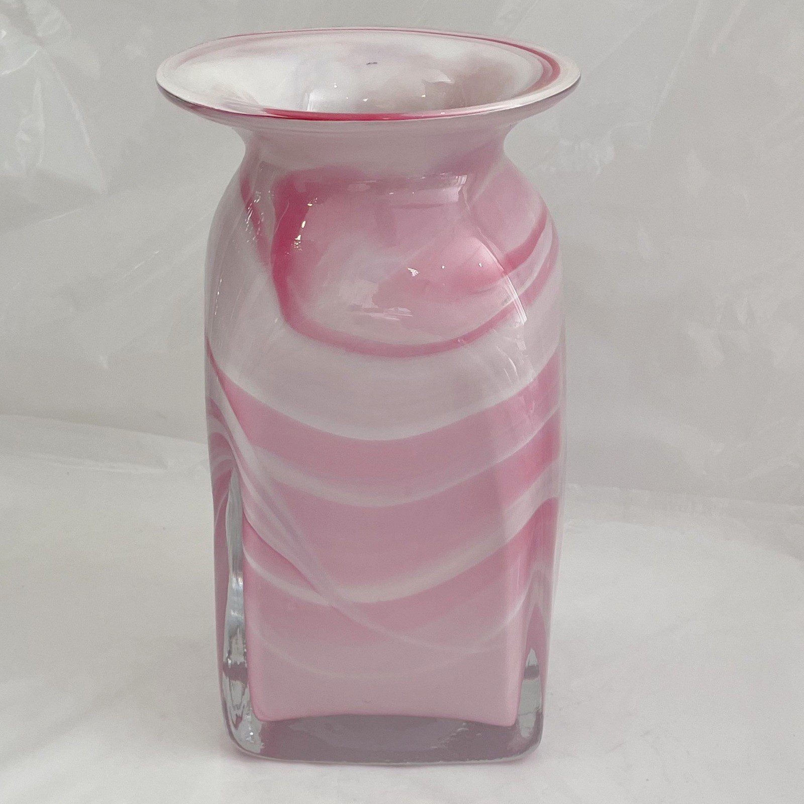 Eckige Blumen Glas Vase Höhe ca. 20 cm Rosa weiß mehrfarbig mundgeblasen Angebot