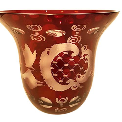 Antik Glas original Egermann Schale Höhe 13 cm Durchm.15 cm rubin rot geschliffen böhmisches Glas