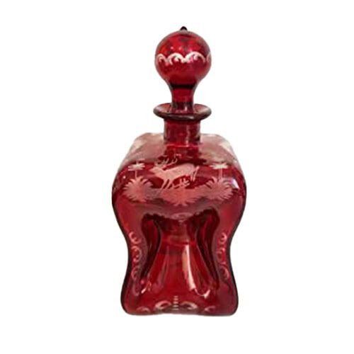 Antik Glas original Egermann Flasche Höhe 23 cm rubin rot geschliffen böhmisches Glas