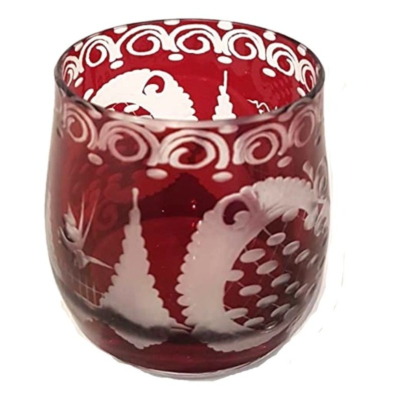 Antik Glas original Egermann Schnapsglas Stamper Höhe 5 cm rubin rot geschliffen böhmisches Glas