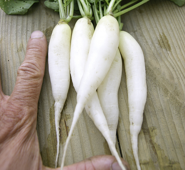 Sehr zartes, ca. 6-8 cm langes weißes, zapfenförmiges Radieschen mit mildwürzigem Geschmack. Die besten Ergebnisse werden im Frühjahr und Spätsommer erzielt.