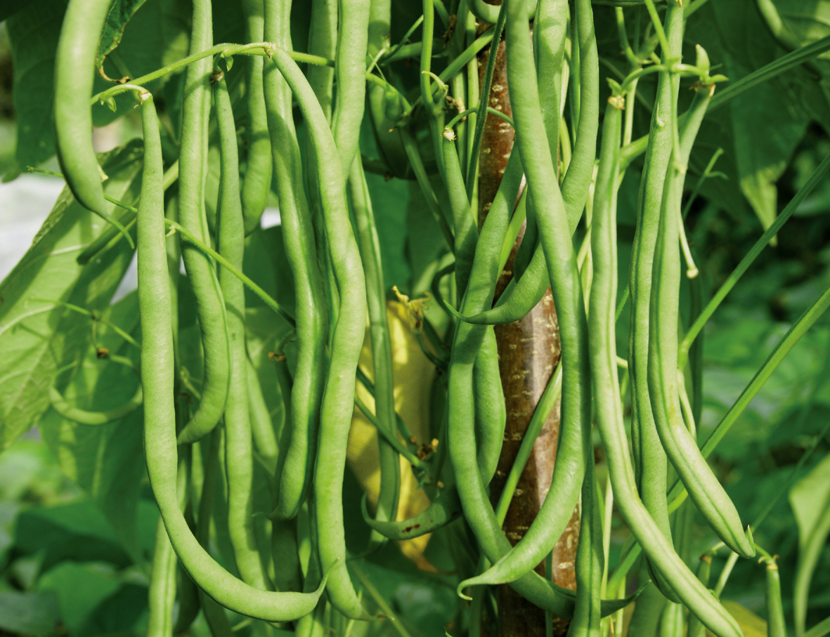 Hülsenlänge ca. 20-22cm, sehr zart und ertragreich. Der Hülsendurchmesser beträgt ca. 7-9 mm und ist damit wesentlich schlanker als bei einer normalen Stangenbohne.