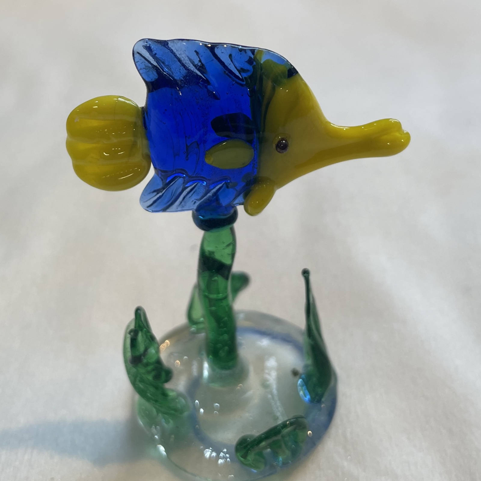 Fisch im Seegras zum hinstellen grün blau gelb Höhe ca. 7 cm Länge 4,5 cm
