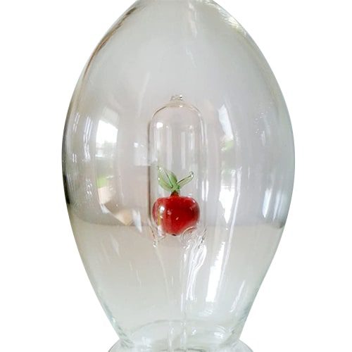 mundgeblasene klare Glaskaraffe befüllbar mit Verschluss und eingearbeitetem bunten Apfel aus Glas Füllmenge 0,5 Liter Höhe ca. 30 cm passend dazu und weitere Artikel von uns finden Sie unter Oberstdorfer Glashütte in unserem Onlineshop viel Freude mit Ihrem Einkauf