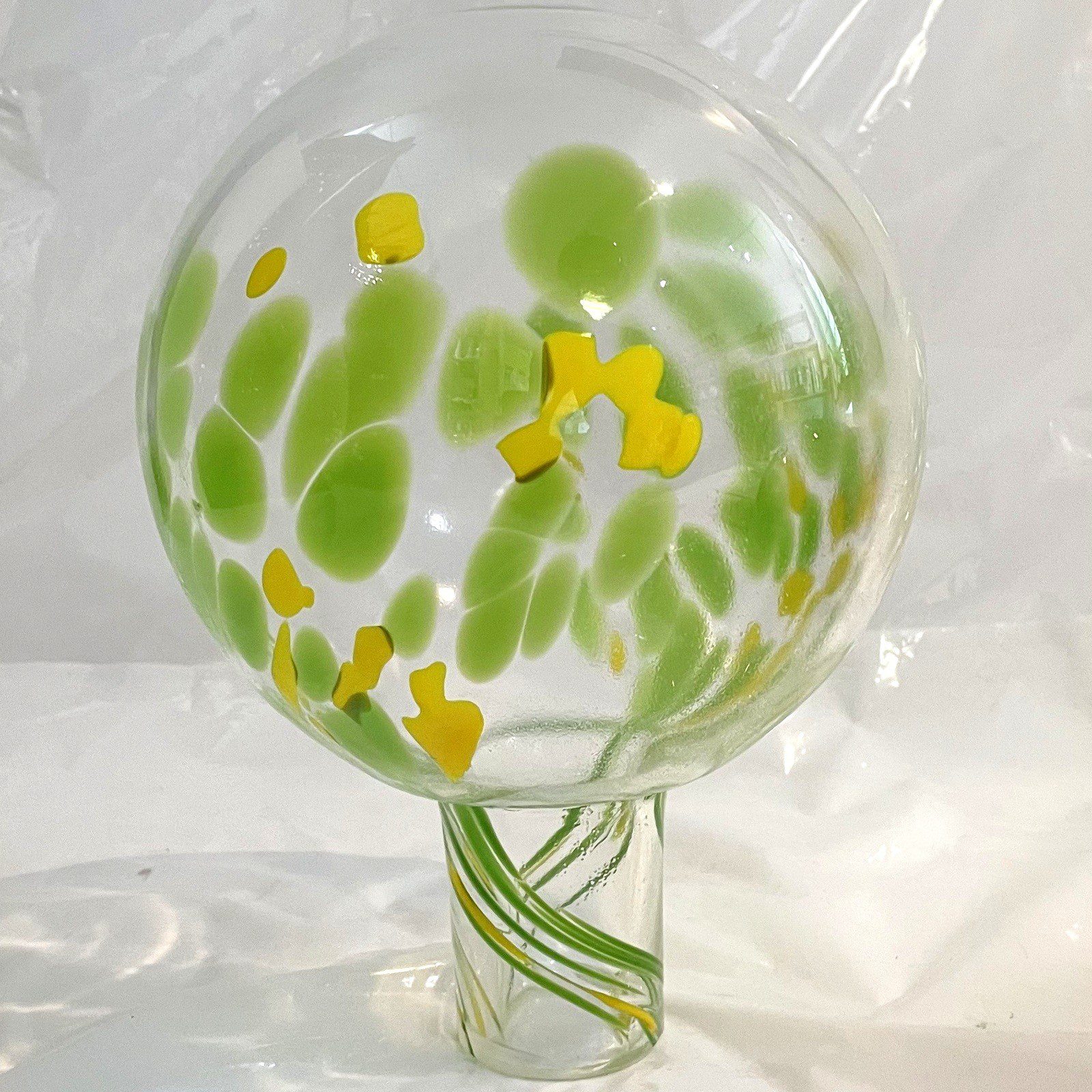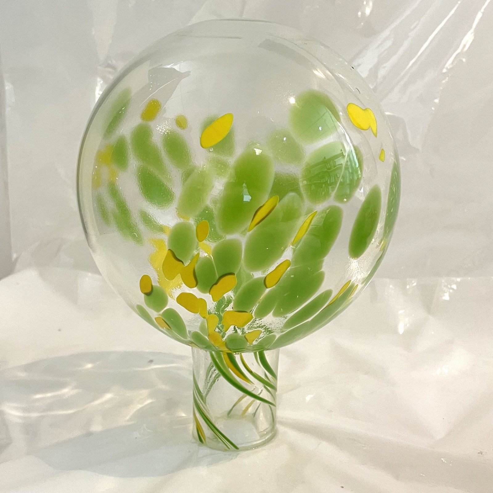 Gartenkugel mundgeblasen Grün Gelb Klar Rosenkugel Glaskugel Blumenstecker Gartendeko Ø ca. 16 cm Höhe ca. 22 cm