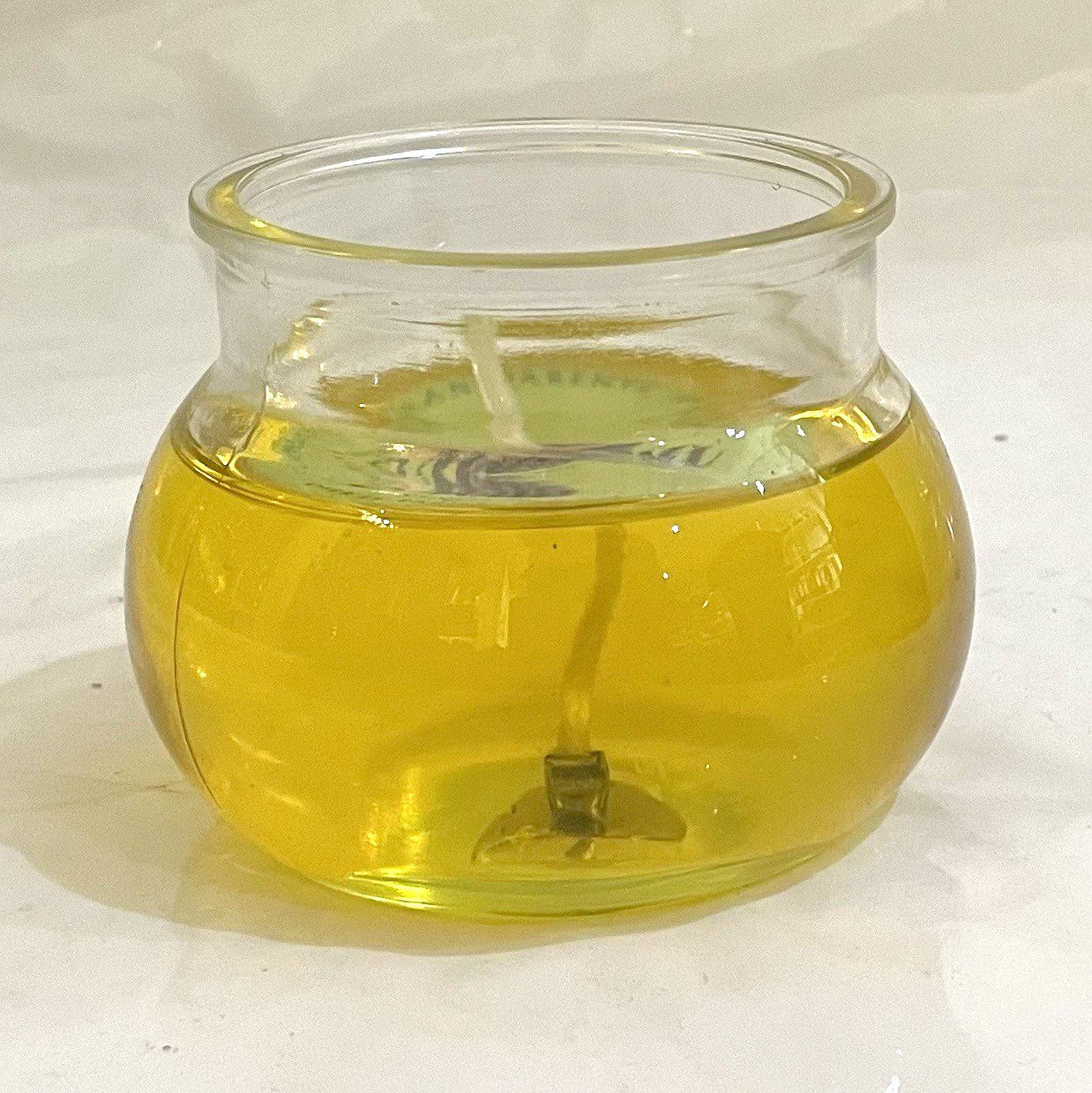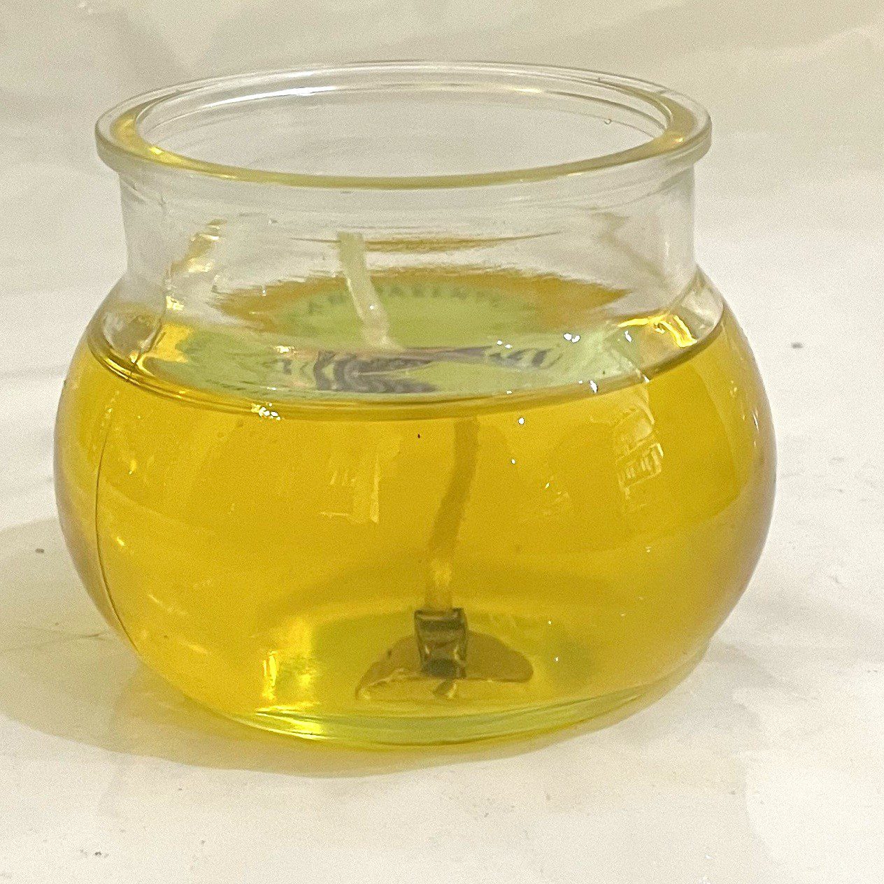Gel Kerze mit Duft lange Brenndauer nachfüllbar dekorative Kerze in der Farbe gelb Höhe ca. 6,5 cm Durchmesser ca. 8,5 cm
