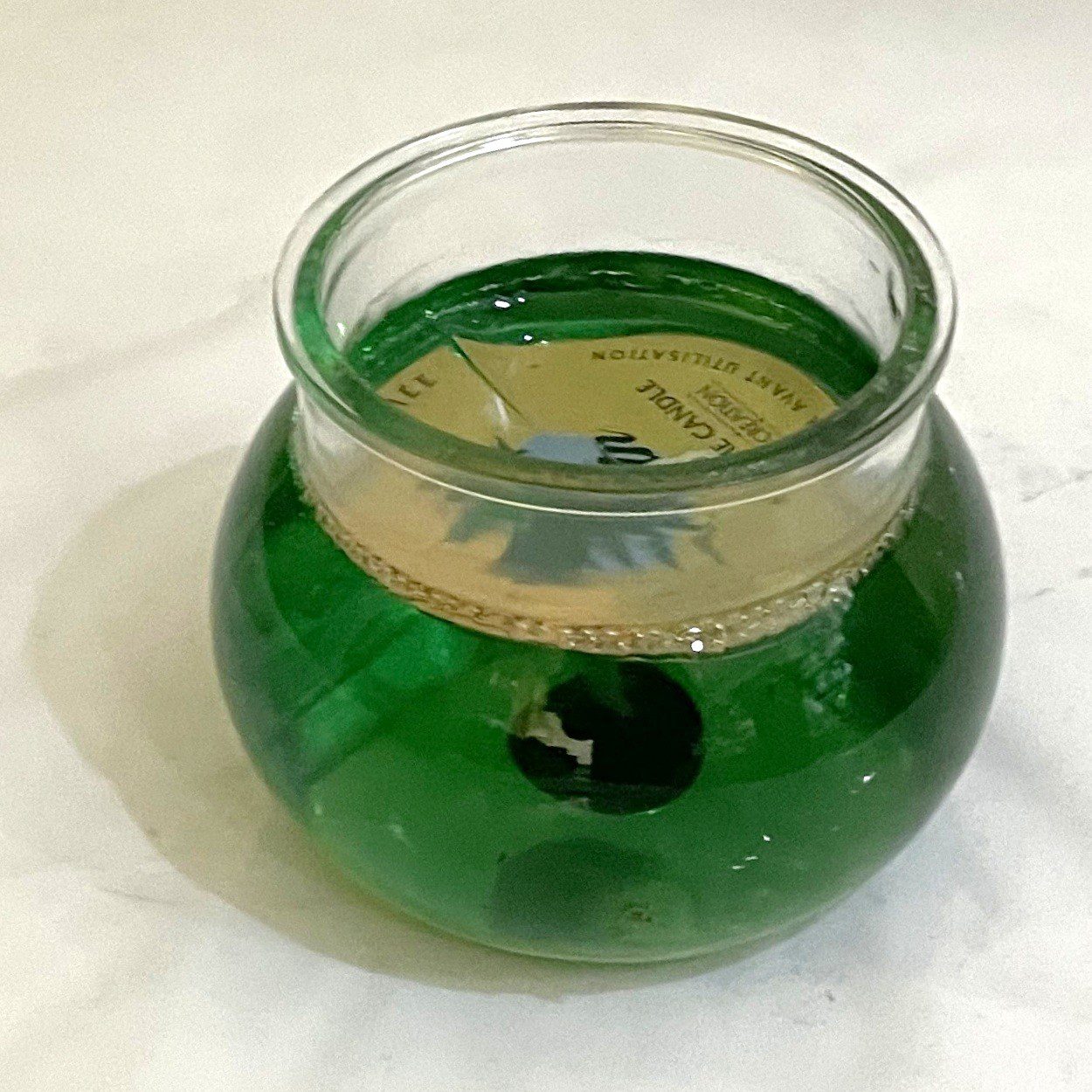 Gel Kerze grün lange Brenndauer nachfüllbar Höhe ca. 6,5 cm Durchmesser ca. 8,5 cm