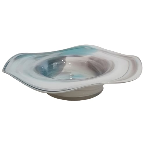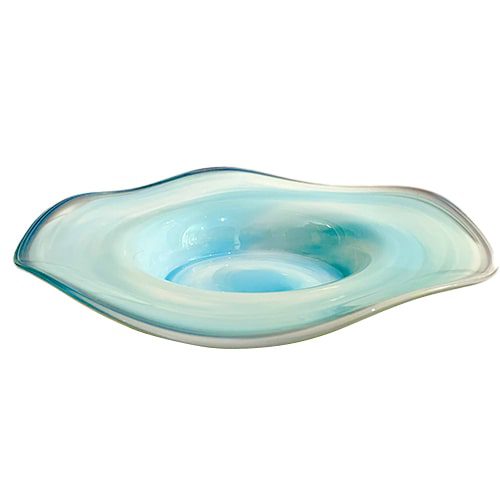 Diese wunderschöne mundgeblasene Glasschale in der Farbe türkis weiß hat einen Durchmesser von ca. 18 cm. Die Schale ist eine sehr schöne Dekoration für Ihren Wohnbereich. Dadurch dass jede Schale mundgeblasen ist, ist diese ein Unikat welches auch eine nette Geschenkidee ist.