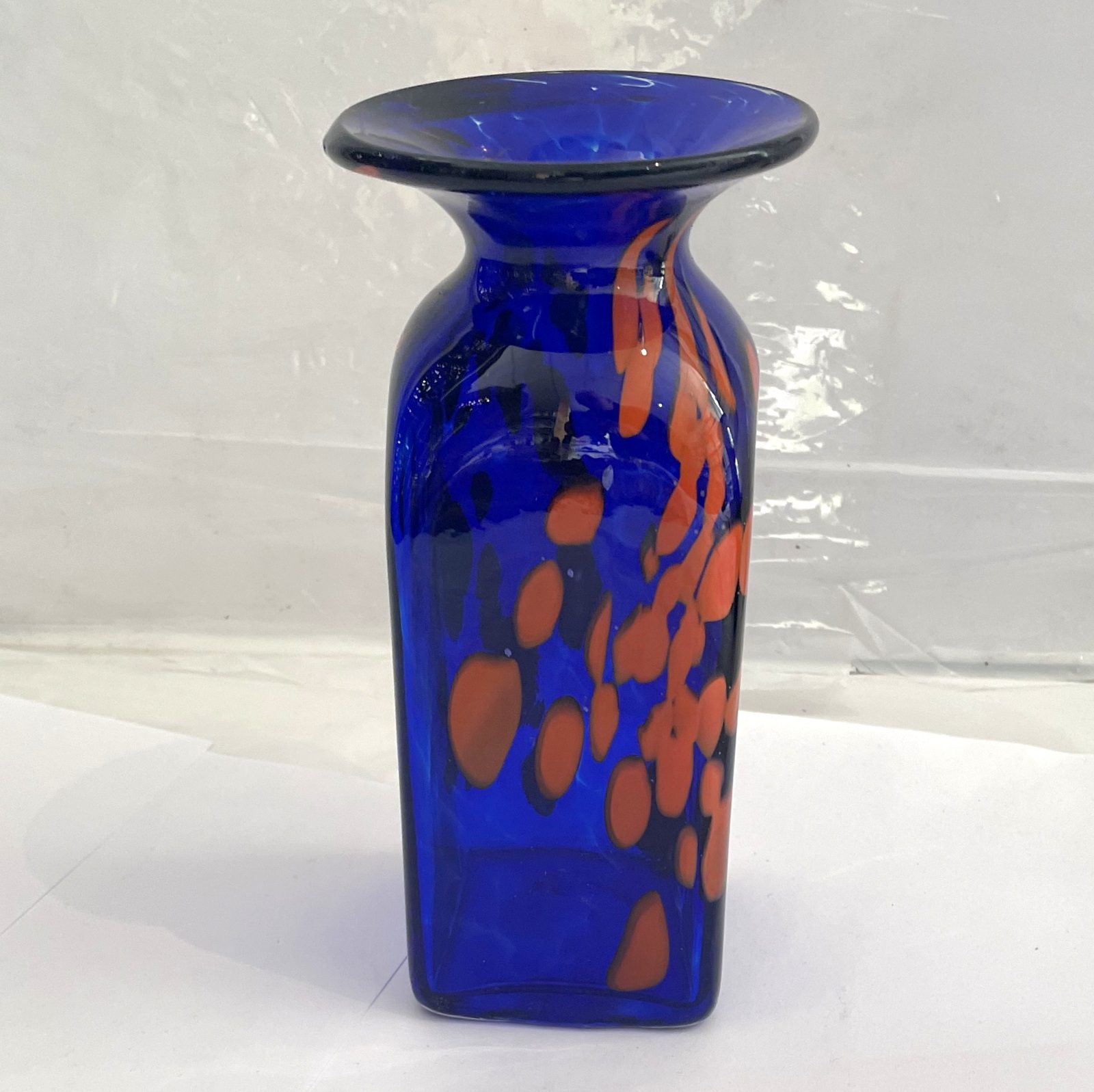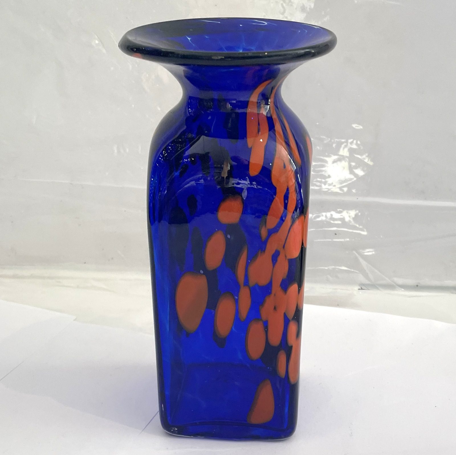 Eckige Glasvase Höhe ca. 15 cm blau orange mehrfarbig mundgeblasen Angebot