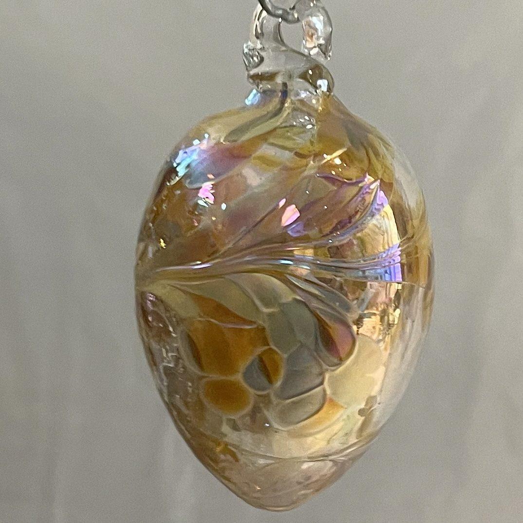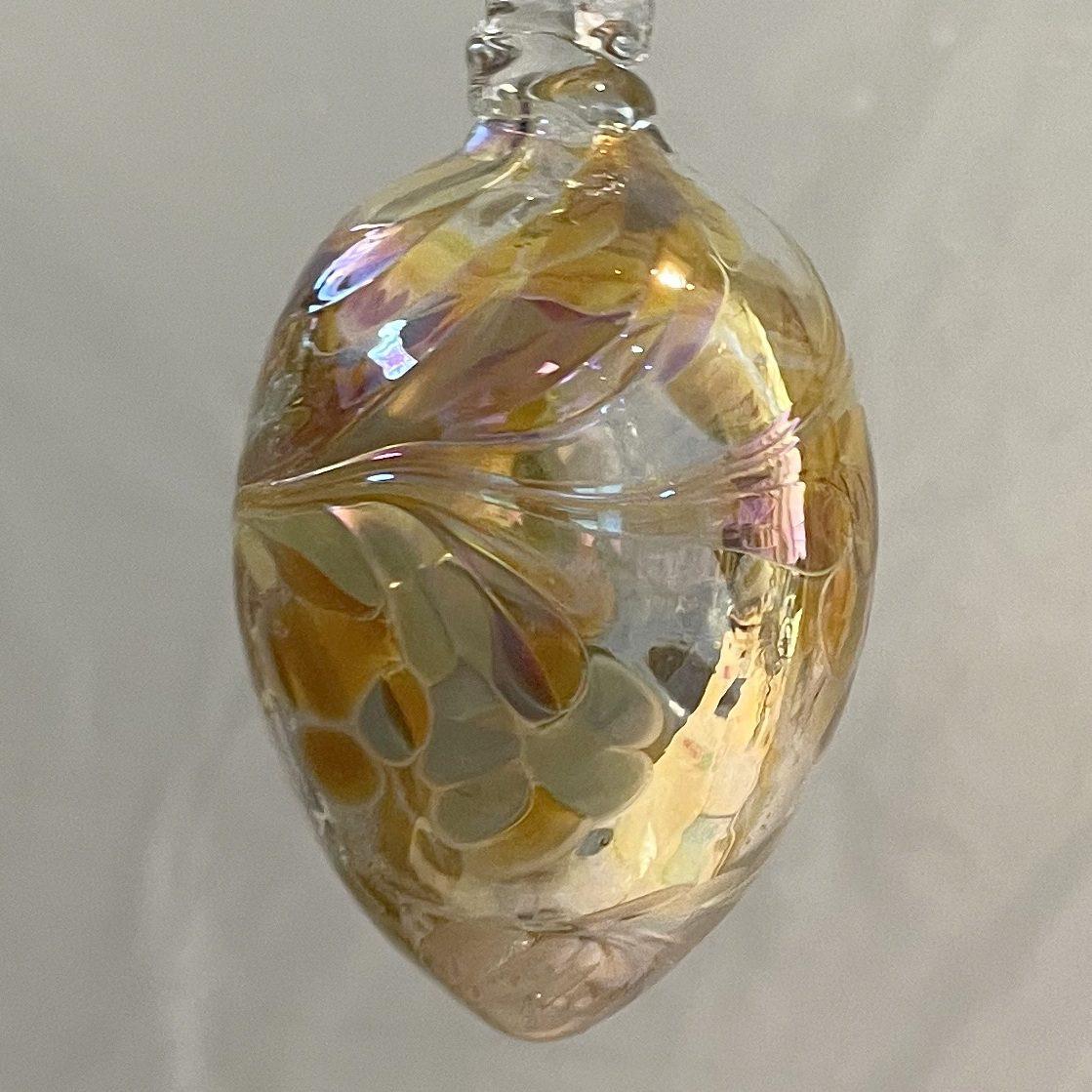 Glas Ei mundgeblasen zum hängen farbig amber klar Glas Höhe 8,5 cm Durchmesser 4,8 cm sortierte Farben siebe Abbildung